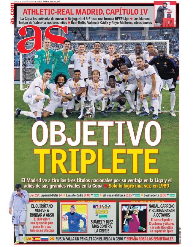 值得一提的是,就在1月份,皇马派媒体还畅想球队夺得三冠王的可能。当时皇马刚刚击败毕尔巴鄂竞技拿到了西班牙超级杯。