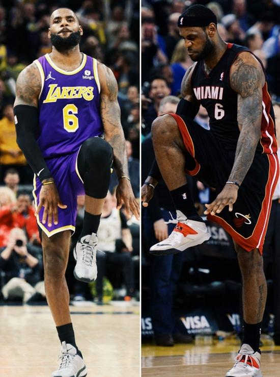 同样的位置,同样的关键三分,同样的庆祝动作,以及同样伟大的勒布朗-詹姆斯。