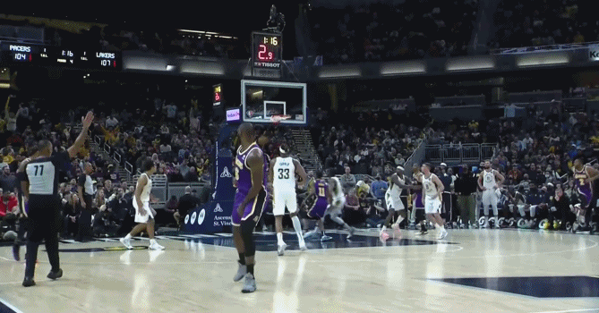 詹姆斯最后时刻和安东尼连续打挡拆,詹姆斯面对换防过来的步行者大个子接连命中关键三分,这个战术成为了湖人赢下比赛的关键。