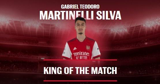 英超官方:马丁内利当选阿森纳vs西汉姆全场MVP